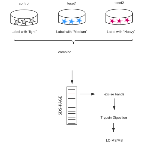 细胞培养氨基酸稳定同位素标记(StableIsotopeLabelingwithAminoacidsinCellculture,SILAC),这种方法首先是由2002年丹麦Mann实验室的Ong等对AACT(氨基酸质量标签)技术作了进一步改进而获得,并首次应用于定量蛋白质组学研究,为全面、系统地定性和定量分析复杂哺乳动物细胞蛋白质组提供了有效的解决方案