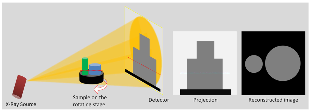 几篇综述论文介绍了Micro-CT的成像原理及应用[4] [5],概括来说,成像原理如下:当X 射线透过样本时,样本各个部位对X射线的吸收率不同。X 射线源发射X 射线,穿透样本,最终在X 射线检测器上成像。对样本进行180˚ 以上的不同角度成像,通过计算机软件,将每个角度的图像进行重构,还原成在电脑中可分析的3D 图像。