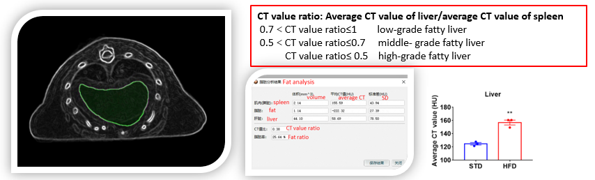 NASH小鼠模型-脂肪肝程度量化-CT值比及绝对CT值